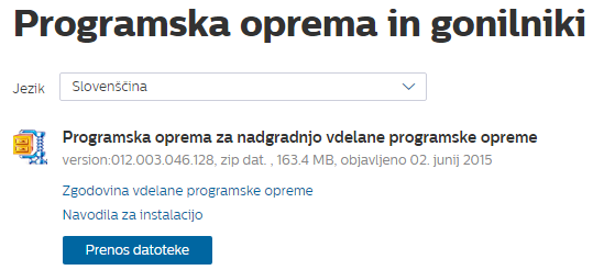 - Če je v razdelku za podporo na voljo novejša različica, prenesite datoteko in jo shranite na računalnik. Opomba: posodobitev programske opreme je običajno stisnjena datoteka zip, za katero je potrebna posebna programska oprema za razširjanje (npr. Winzip ali WinRar).